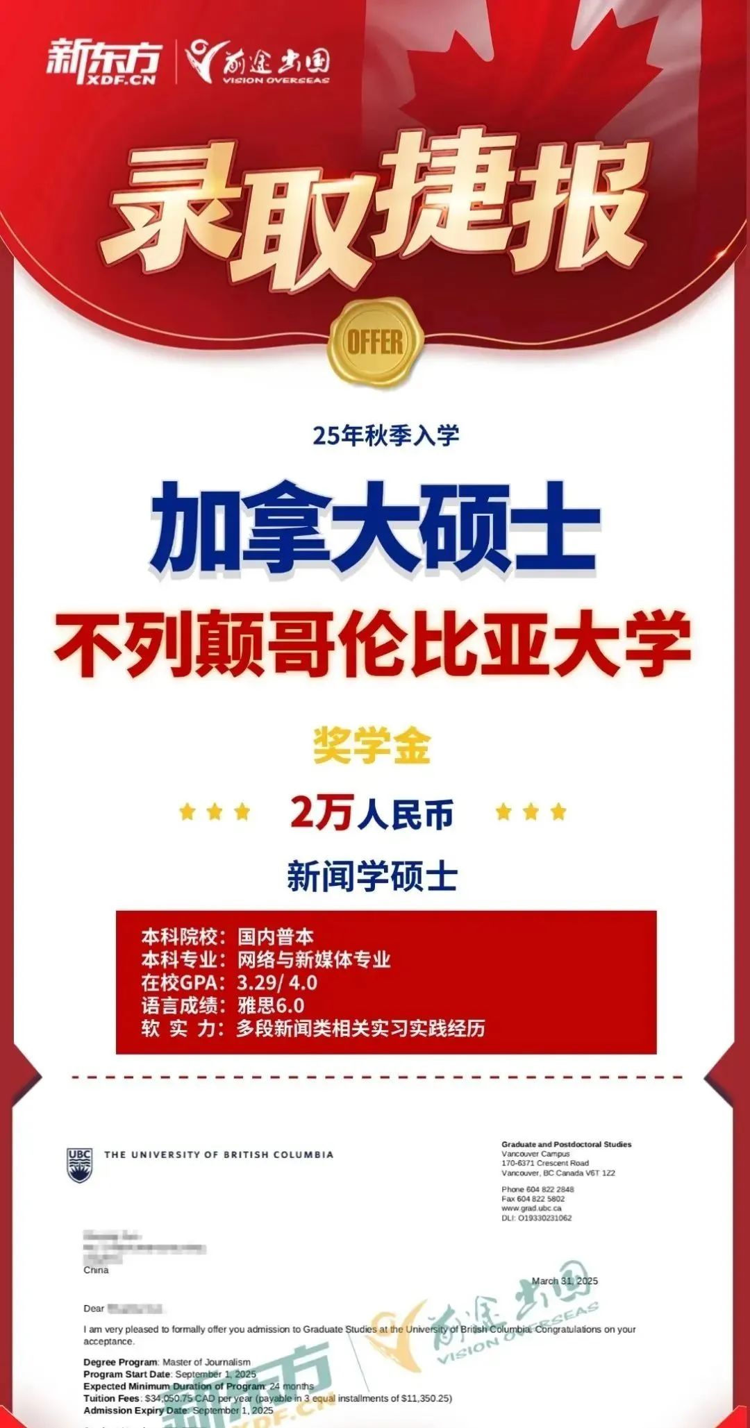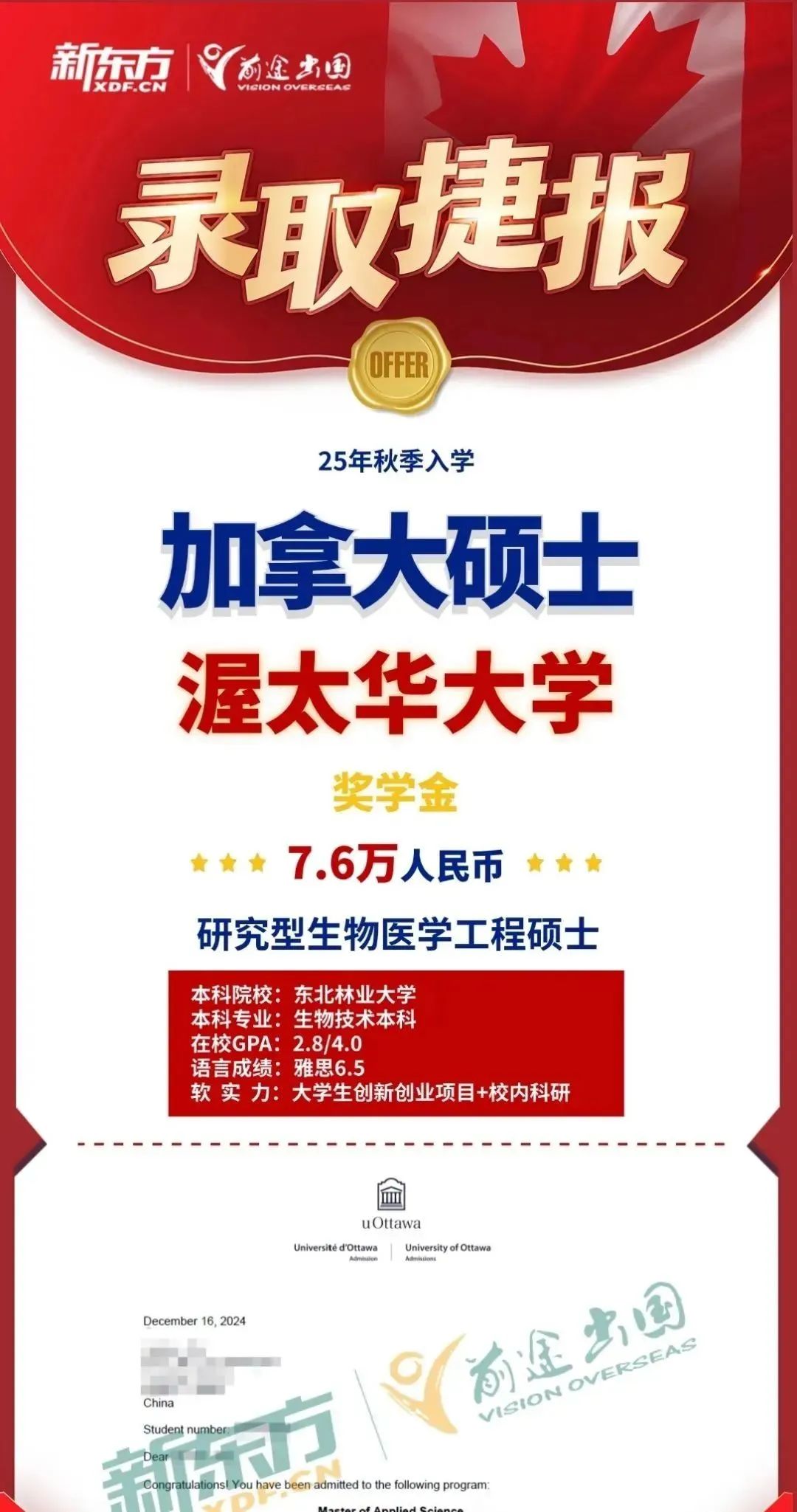 2025录取季,加拿大硕士留学依然保持着高热度,截至5月15日,新东方前途出国加拿大录取总数为7582枚。