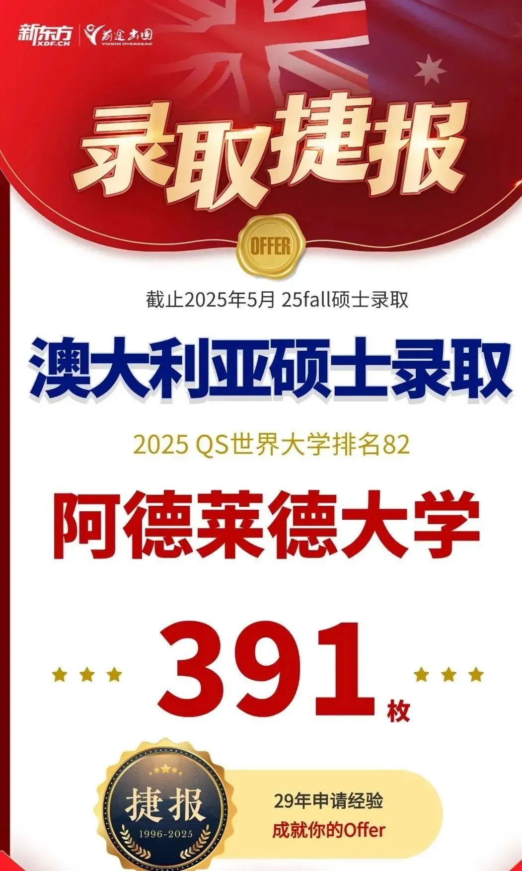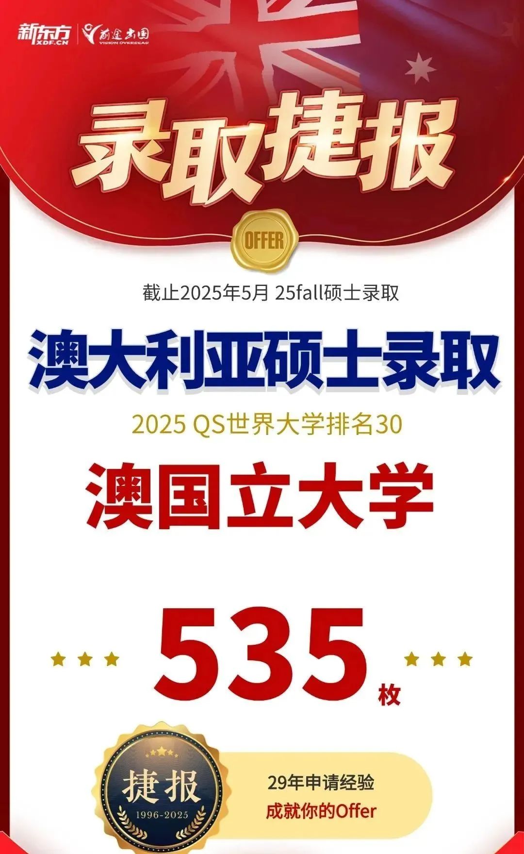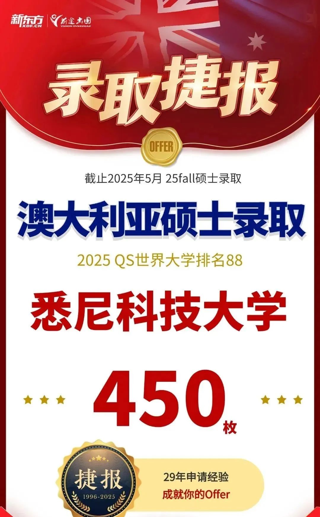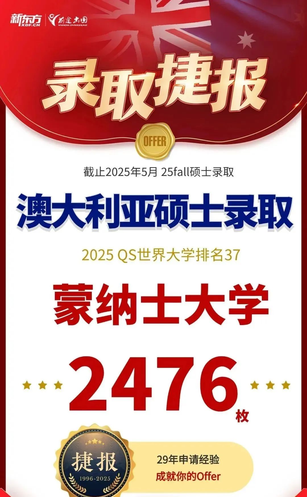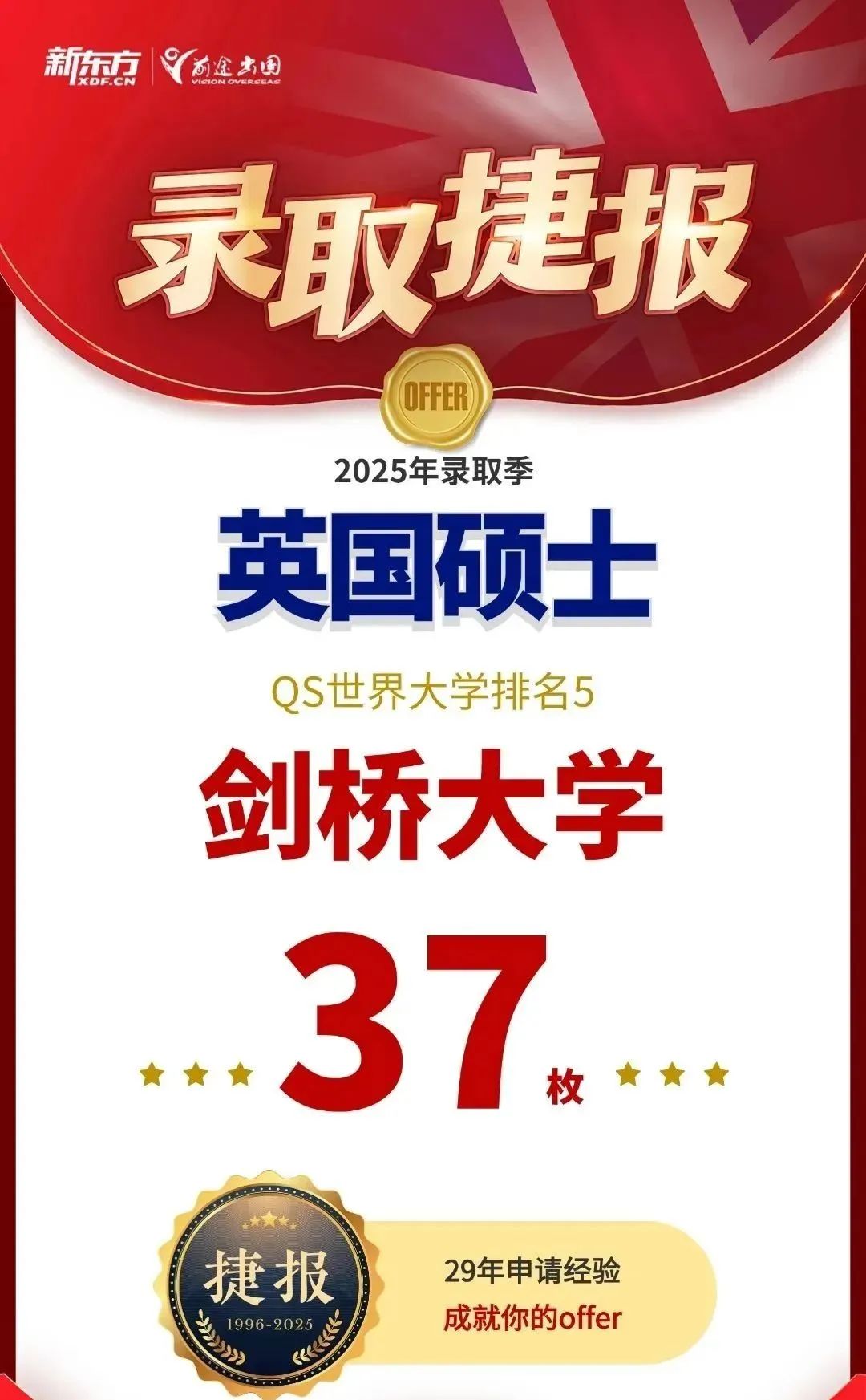 相比于2024申请季,2025年英国院校的审理速度相对较快,且录取率同期对比整体增长8%。截至5月,新东方前途出国共斩获QS TOP200院校硕士录取总数,共计19837枚的好成绩!