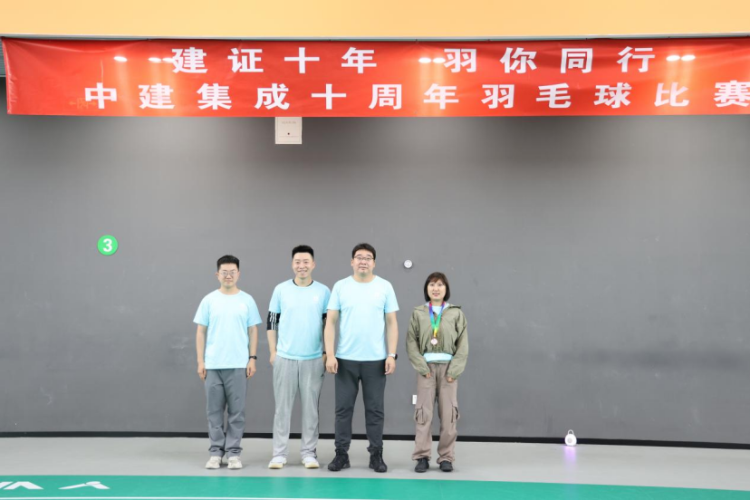 5月23日,中建集成工会联合所属各单位举办中建集成“建证十年 羽你同行”羽毛球赛。本次比赛设置女子单打、男子单打、混合双打、男子双打4个比赛项目,共有95名员工报名参赛。公司党委书记、董事长张健飞,党委副书记、纪委书记、工会主席温爽,副总经理兼总法律顾问曹长印,设计总监李志武,财务总监陈凤勤为获奖选手颁奖。
