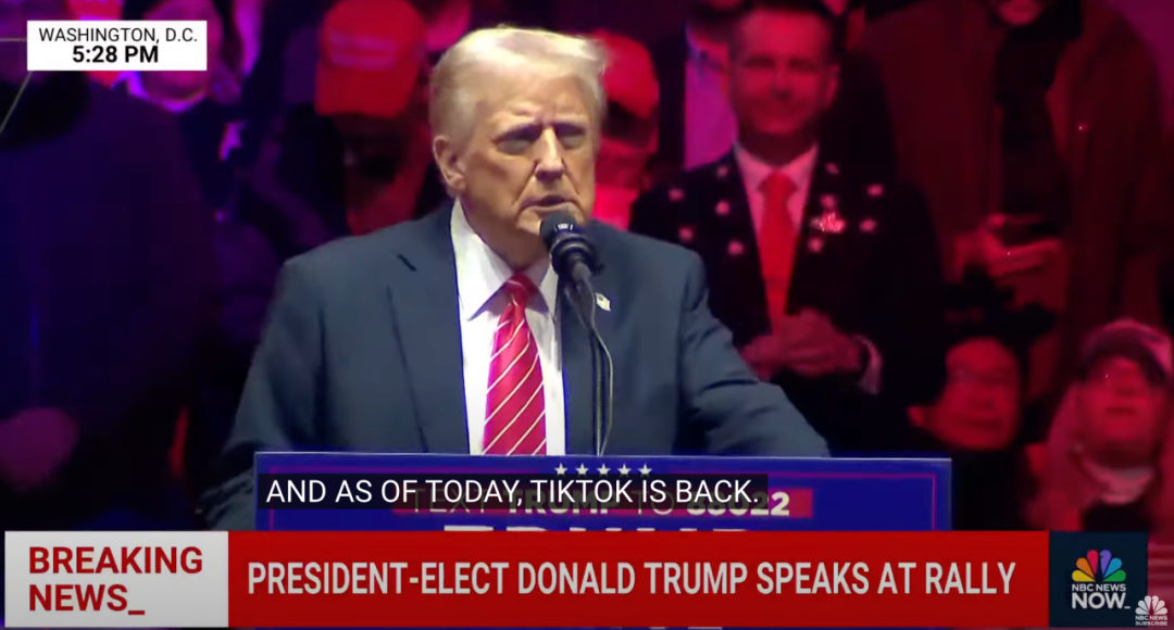 TikTok在美国的命运充满了戏剧性的转折。上周美国最高法院准备执行拜登政府签署的TikTok禁止法案,大量美国网友涌入中国社交平台——小红书;随后,美国时间1月18日深夜TikTok彻底下架停止服务;然而十几个小时过去后,1月19日特朗普给予字节90天潜在宽限期,重新恢复了TikTok的服务。