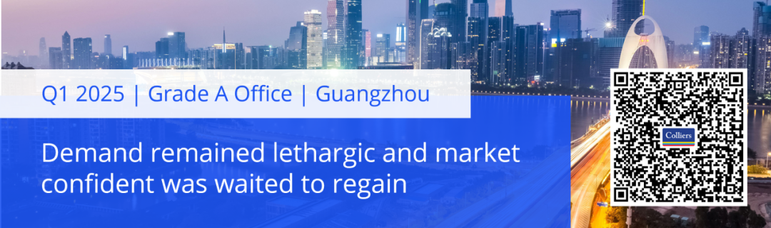 2025年一季度,广州甲级写字楼市场净吸纳值为6万平方米,其中涵盖约5万平方米新入市楼宇自用面积去化。如扣除自用面积,新增需求仅约1万平方米,租赁市场表现平静。市场租赁需求主要来自国际金融城和琶洲两个新兴市场,其租赁表现继续跑赢传统市场。