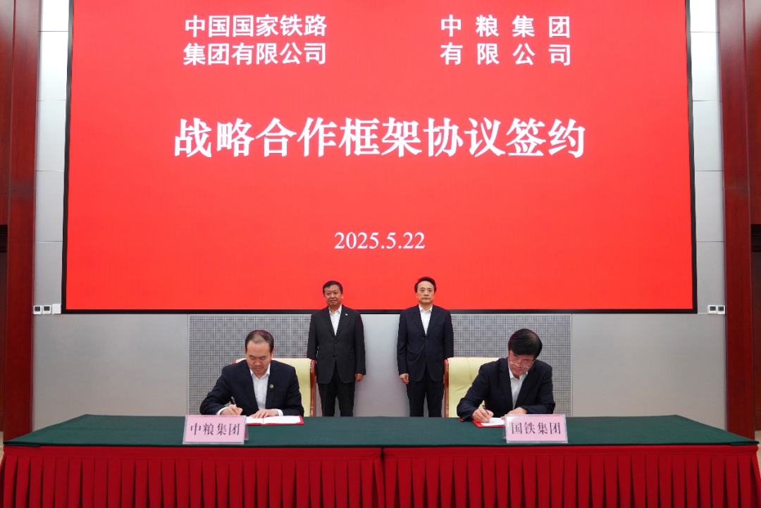 5月22日,中粮集团与中国国家铁路集团在京签署战略合作协议,双方将携手构建畅通高效的粮食物流体系,助力降低全社会物流成本。同日,双方战略合作项目全国首列粮食多式联运“一单制”班列正式发车。