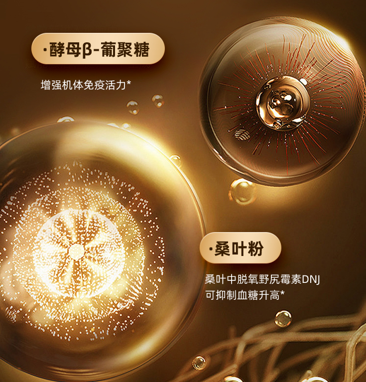 针对中老年人及控糖人群,特别加入桑叶粉+鼠李糖乳酪杆菌LRa66,协同驼乳粉形成三重控糖配方。