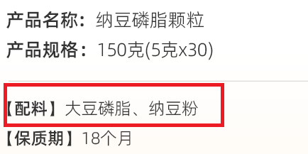 优质的产品配料表应简洁明了,并在靠前的位置或首位明确标出关键成分,即大豆磷脂等,警惕模糊标注“大豆粉”“纳豆冻干粉”等伪概念。