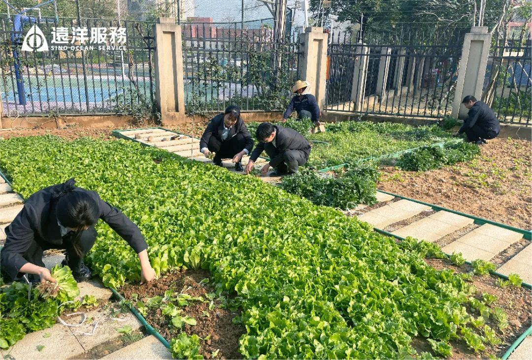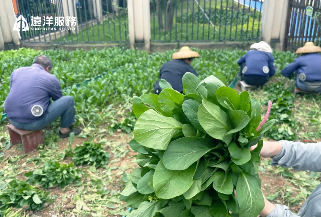 为了让这片新生的菜园真正“活”起来,物业团队各条线联动,分工配合。前期由绿化团队进行播种及浇水呵护;到蔬菜成熟时,由客服和安管团队进行采摘和打包、派发;采摘完成后,由保洁团队进行翻土和施肥,为下一轮播种做好准备。整个过程环环相扣,像一场无声的接力赛,齐心协力呵护这片绿意。