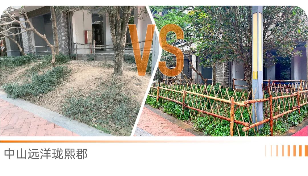 中山远洋珑熙郡物业团队根据社区裸露地绿植缺失情况,挑选合适的绿植进行补种,并针对性安装了竹栏,防止草坪再次被踩踏,既美观又实用。