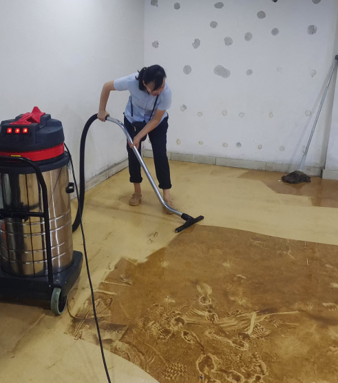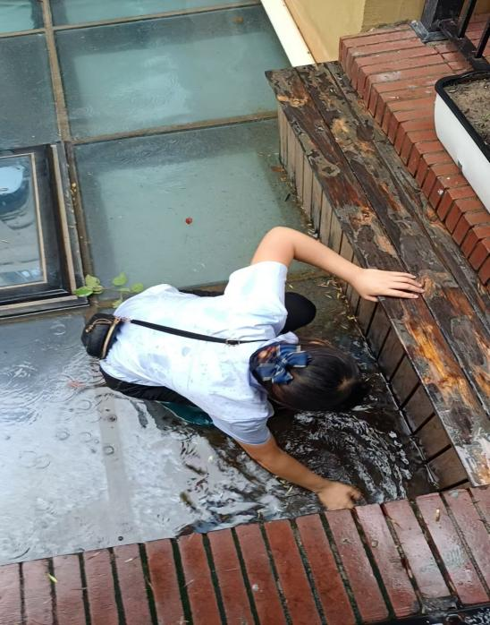 暴雨突袭,小区环路积水漫过脚踝。6栋某户业主紧急来电,担心家中再次进水。管家吴晓凤闻讯即动,冒雨赶赴现场,发现下沉庭院雨水倒灌,积水已涌入室内。她立即启动应急预案,同步向业主汇报险情。