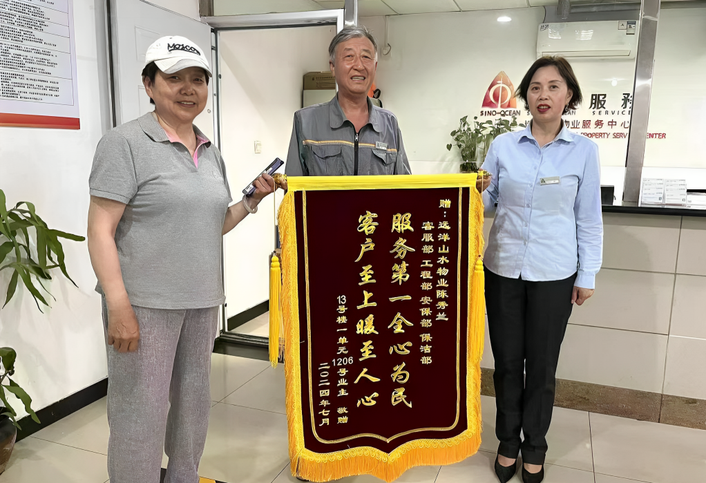 在120到达后,石利红准确向医护人员转述病情,并全程陪护就医,直至家属抵达。业主深受感动,特意定制锦旗致谢,称赞其服务"如家人般温暖贴心"。