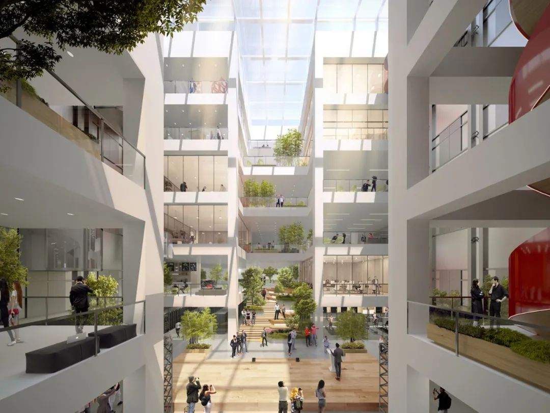梳理了项目所面对的问题后,我们不断思考如何同时解决这些问题,而且不光要“做到”还要“做好”。最终我们决定以“打开中庭引入自然光”来解决既有建筑带来的问题,用一个集合竖向交通、休闲场景营造、爆点空间、活力开放于一体的中庭去唤醒属于奥林NEO曾经的活力。