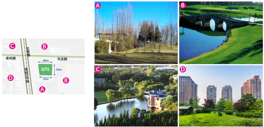 北京奥林NEO项目位于北京市朝阳区,介于四环与五环之间,与5号线、15号线换乘站大屯路东站相邻。场地南侧为公园绿化场地,北侧和东侧为高尔夫训练场地,西侧为居住区,整体自然环境良好,三面环绿。同时坐落于北京市热门商务圈亚奥与望京两大产业聚集地之间的核心地带,周边配套齐全,景观资源丰富。作为两大商务圈的连接点,周边对于高水准办公空间的需求量极大,综合周边市场需求,用地优势,将其全新定位为高科技企业定制的总部独栋办公楼。