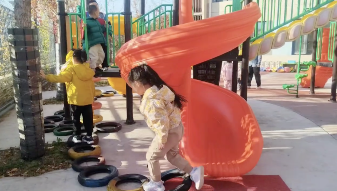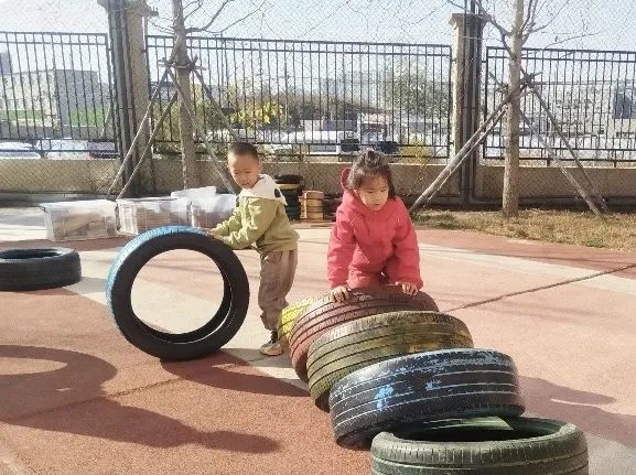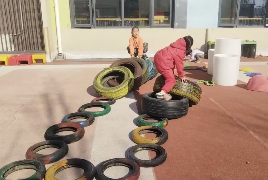 操场的西南角,整齐摆放着一片废旧的轮胎。在成人眼中,这些轮胎或许用处不大,可在孩子们的世界里,它们却是最好的“玩伴”。在孩子们的眼中,“废旧轮胎”完全超越了它们原本单一的功能,成为了见证他们在自主游戏过程中每一步成长与变化的神奇存在。本学期,孩子们在上个学期滚轮胎、跳轮胎的基础上,又不断创新出更多新奇的玩法。一起来看看他们是如何解锁轮胎的多种玩法的吧!