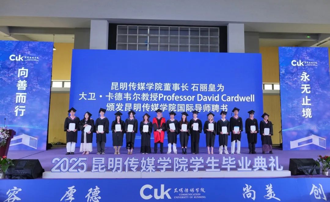 6月27日,昆明传媒学院举行2025届毕业生毕业典礼暨学士学位授予仪式。剑桥大学前副校长大卫·卡德韦尔教授作为特邀学术见证人,出席昆明传媒学院2025届毕业典礼,为优秀毕业生代表拨穗并寄语祝福。这是其职业生涯中首次参与中国高校学位授予仪式,此举标志着昆明传媒学院在全球化办学进程中迈出了重要一步。