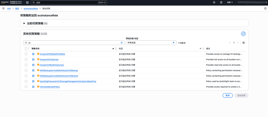 下图为IAM Role进行授权的部分操作截图: