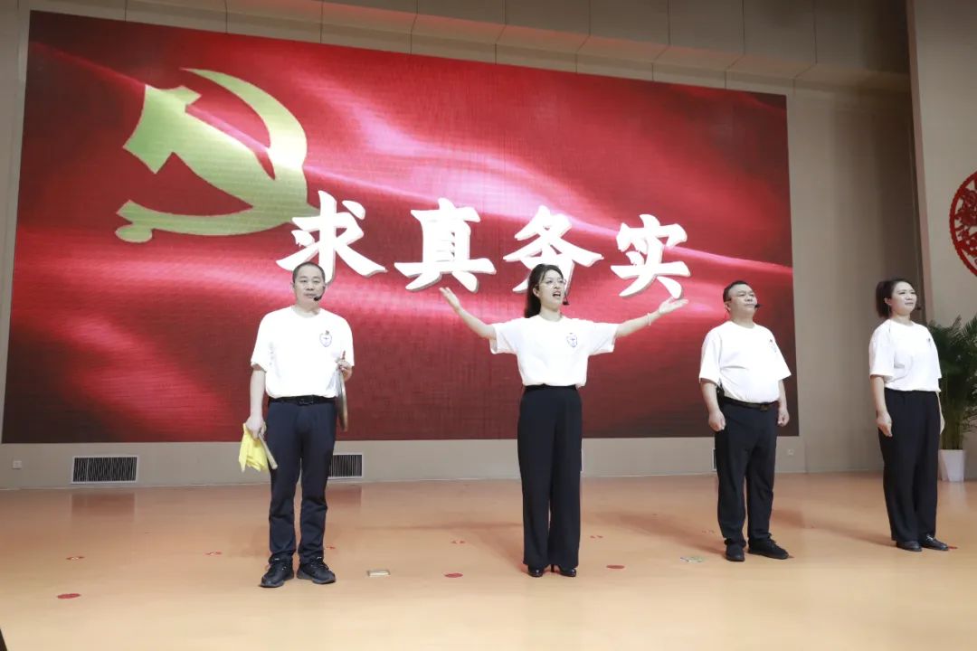 整场晚会通过歌舞、情景剧、合唱等形式,展现多氟多人爱党爱国爱企的真挚情感。随着生产三党支部歌舞《国家》的旋律响起,晚会正式拉开序幕。歌声中满是多氟多人在党的领导下,破浪前行的豪迈情怀;生产一党支部的情景剧《觉醒年代》带领观众穿越百年光影,进行了一场震撼人心的精神对话;当观众还沉浸在历史的回响中,生产二党支部的舞蹈《如愿》以优美舞姿描绘出对未来美好的愿景;氟基党支部带来的原创曲目《前进吧 多氟多》,抒发了广大干部职工对企业的热爱,将晚会推向了高潮。