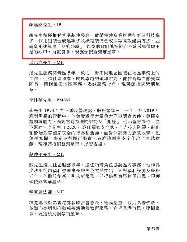 7月1日,香港特区政府于宪报刊登2025年获授勋衔及嘉奖人士名单,中国海外集团有限公司董事长、香港中国企业协会副会长、中国海外爱心基金会董事颜建国先生获香港特区政府授予铜紫荆星章,即日正式生效。这是香港特区政府对中国海外集团及颜建国先生多年来为香港社会作出重要贡献的肯定和嘉许。
