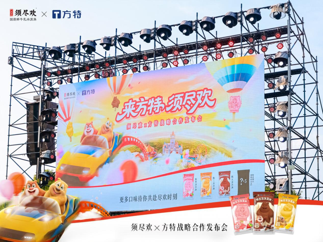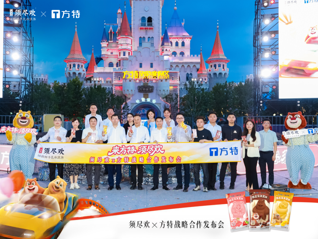 作为中国乳业领军者,伊利集团持续引领产品创新与消费场景拓展。旗下须尽欢品牌,作为集团精心打造的超高端“国韵鲜牛乳冰淇淋”标杆,自诞生起便承载着传递“人生此刻须尽欢”理念、融合传统与现代的使命。此次选择与华强方特合作,源于双方在精神内核上的深度契合——共同致力于为消费者创造欢乐体验。华强方特集团作为中国文旅产业的标杆,荣膺“全国文化企业30强”、“国家文化和科技融合示范基地”等多项殊荣,拥有强大的综合实力,其家喻户晓的“熊出没”国民IP和全球领先的主题乐园网络,承载并彰显了广泛的欢乐场景与深厚的文化科技融合底蕴,为双方共同探索文旅消费新场景奠定了坚实基础。