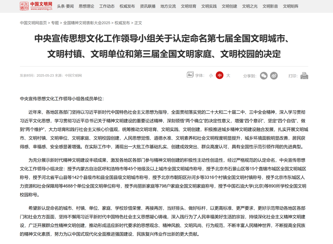 近期,中央精神文明建设办公室发布第七届全国文明单位认定命名名单,宁夏大北农光荣入选。这是对公司在物质文明与精神文明协调发展、积极履行社会责任、构建和谐企业等方面突出成就的国家级权威认可。宁夏大北农始终将文明创建融入企业生产经营全过程,致力于打造高水平幸福企业,此次入选标志着其成为践行社会主义核心价值观的企业标杆。