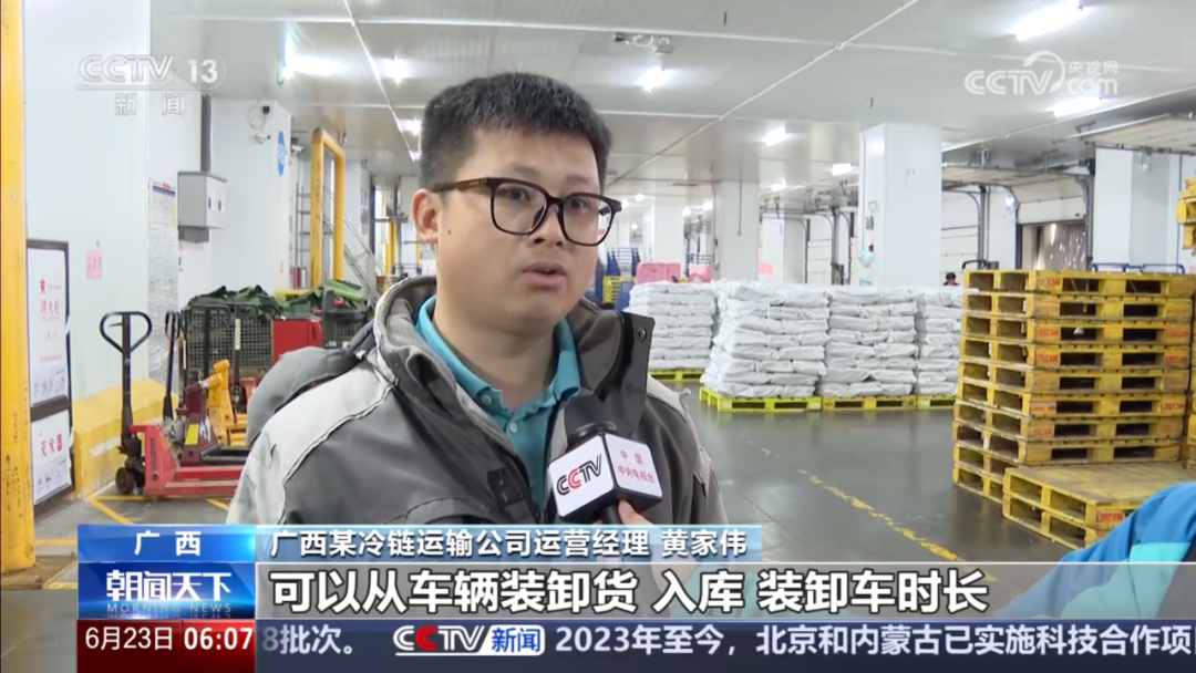 中通冷链广西省公司运营管理经理黄家伟接受了央视记者的采访,深入阐释了中通冷链保障生鲜品质的核心科技——全程可视化、可追溯的智慧冷链系统。
