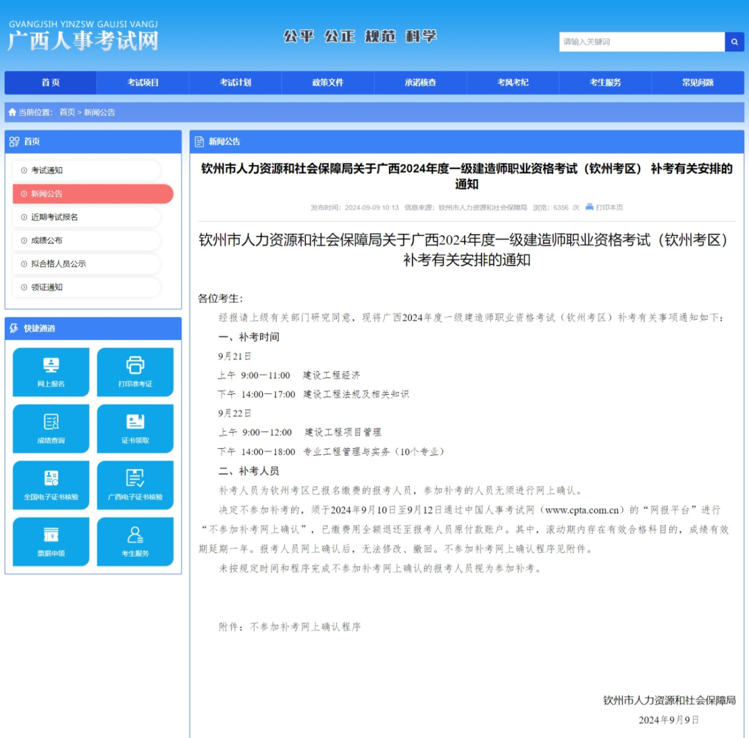 决定不参加补考的,须于9月10日至9月12日通过中国人事考试网的“网报平台”进行“不参加补考网上确认”,已缴费用全额退还至报考人员原付款账户。其中,滚动期内存在有效合格科目的,成绩有效期延期一年。