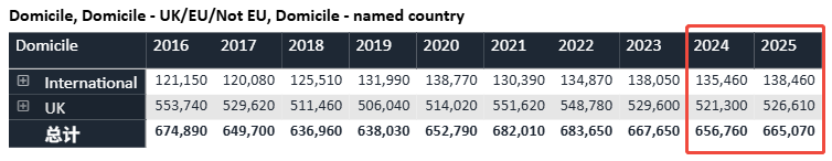 UCAS近期也发布了截至6月30日的2025年英国本科申请最终数据。这些数据对准备申请英国高校的学生极具参考价值。