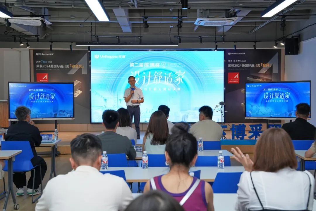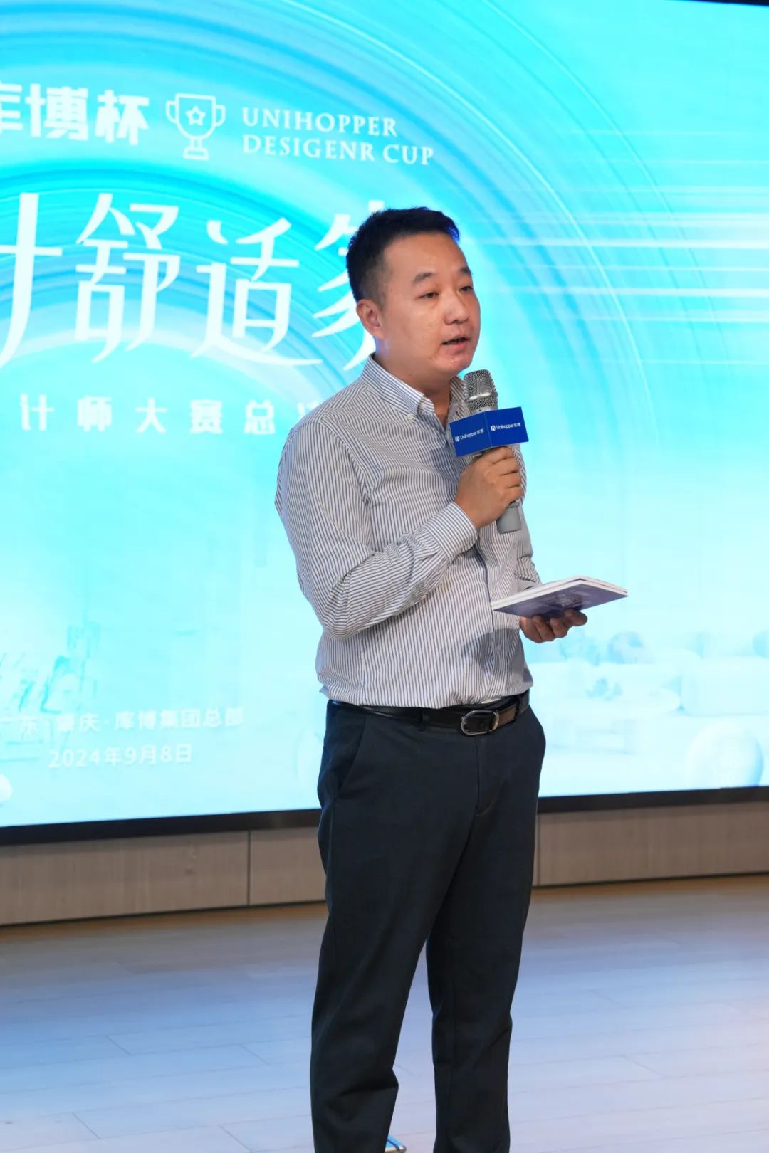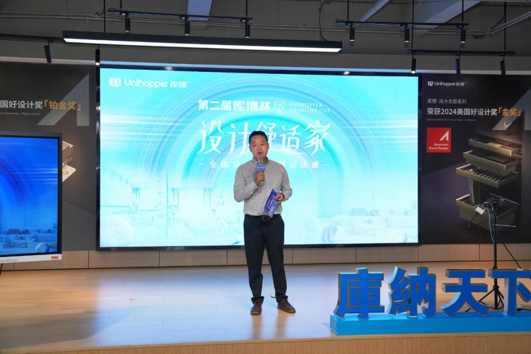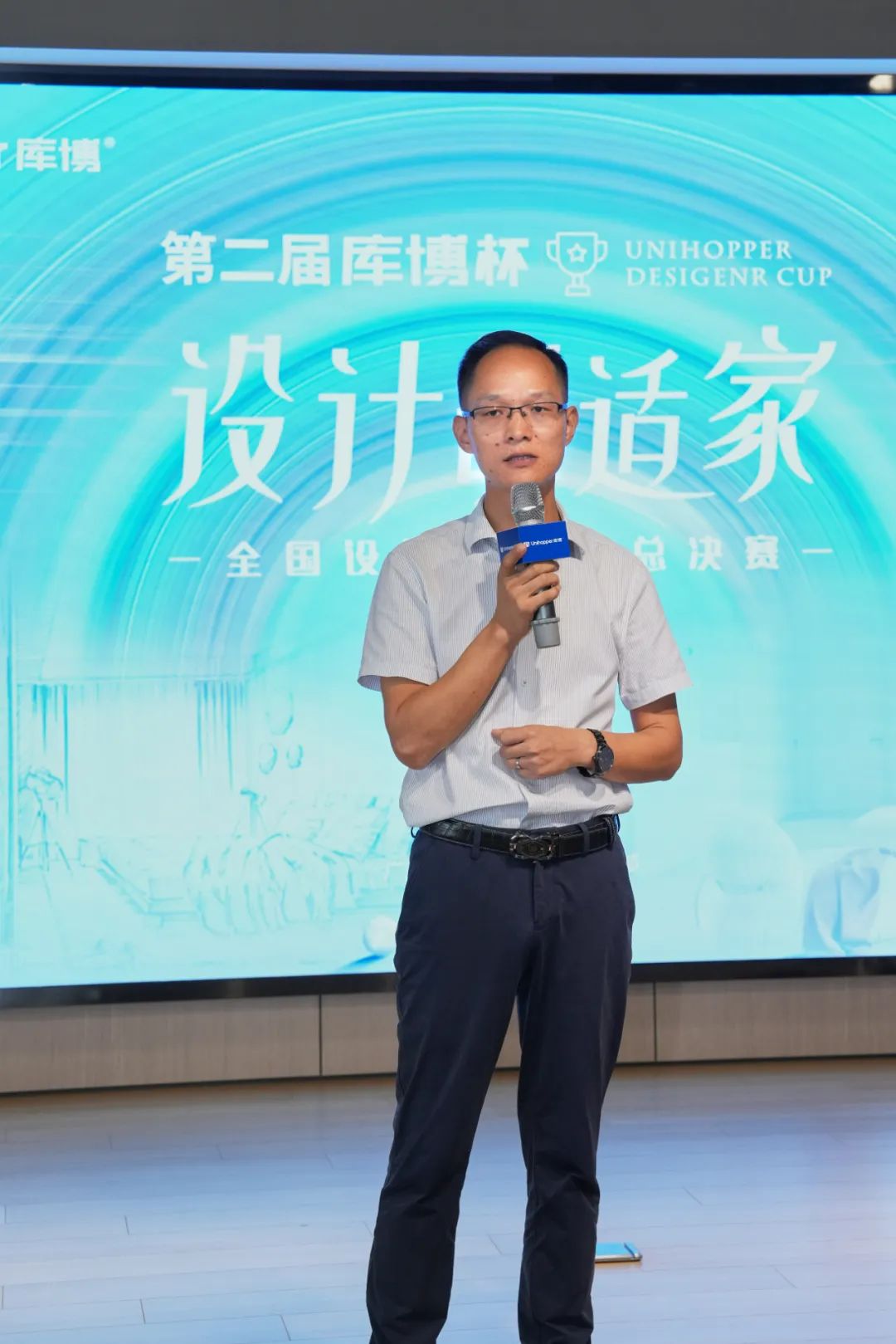 决赛伊始,Unihopper库博集团营销总经理胡海军先生在致辞中表示,第二届“库博杯”全国设计师大赛自启动以来,获得了全国各地设计师们的积极响应和踊跃投稿,共收到了千余份设计佳作,总参赛人数比去年增长了50%。从区域赛到全国总决赛,不同背景和风格的设计师在相互交流中碰撞出新的灵感火花,共同推动设计行业的繁荣与进步。