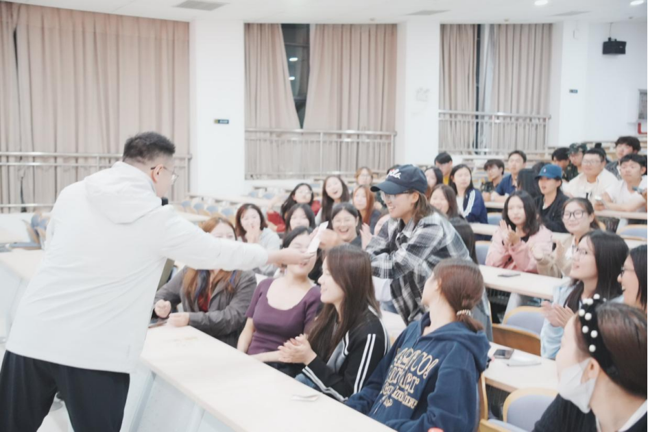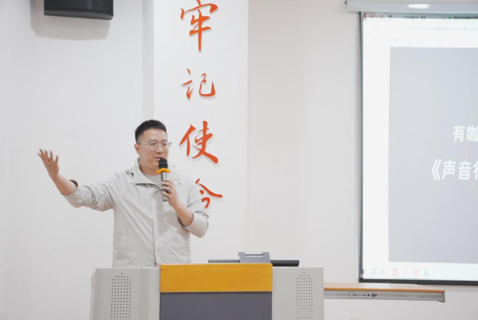 本次讲座还设置了惊喜环节,特别邀请到深圳有咖互动集团商务总监肖峣莅临,分享有声行业发展现状及有声产业链人才需求。随着配音作品类型和创作形式愈加多元,爱好者的队伍日益庞大,配音艺术进入蓬勃发展的新时期,尤其以大学生为代表的Z世代年轻人更是占据了重要地位。肖老师现场连线知名配音导演徐佳琦,为在场同学送上“进入配音行业小贴士”,鼓励同学们积极尝试探索配音艺术的更多可能性,期待大家保持对配音艺术的热爱和追求,共创有声行业的美好未来。