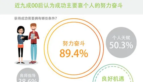 近九成00后依然认为,成功主要靠个人的努力奋斗。