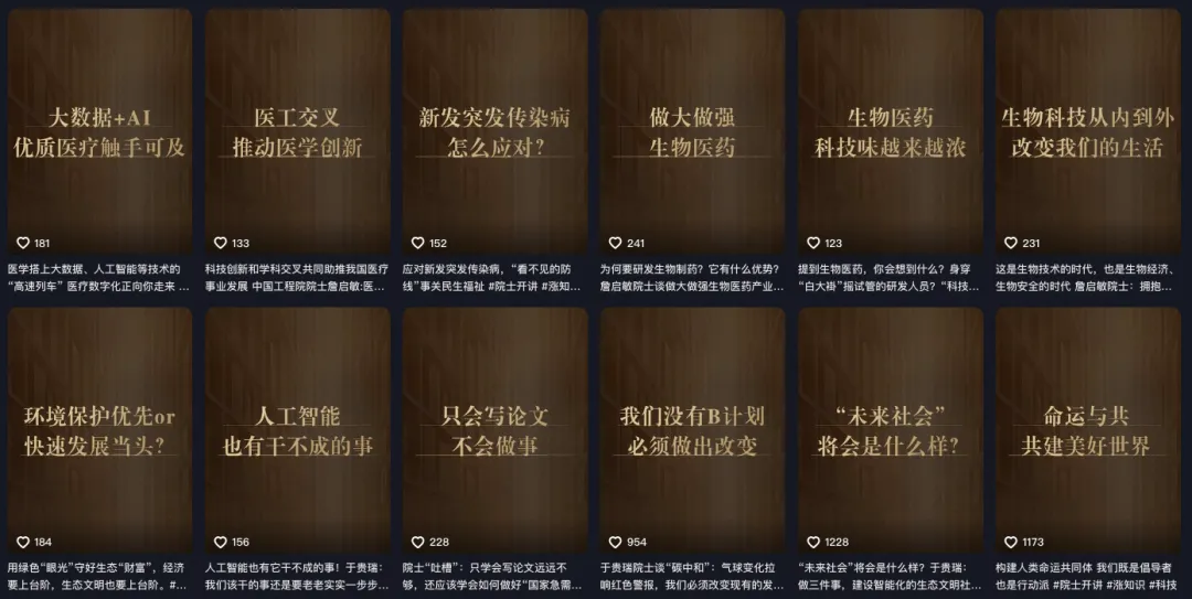 有个账号,叫“院士开讲”,每两周会有一位资深院士开启一场直播。