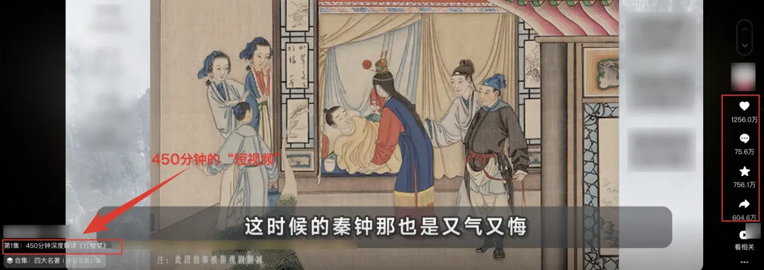 你可以看到,制作周期长达5个月,视频时长450分钟的《红楼梦深度解读》被超过1亿人观看,755万人收藏的“数据奇观”。