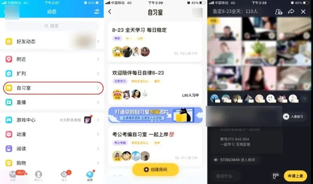 在聊天APP里开自习室,还是一群人开着视频互相监督的自习室?