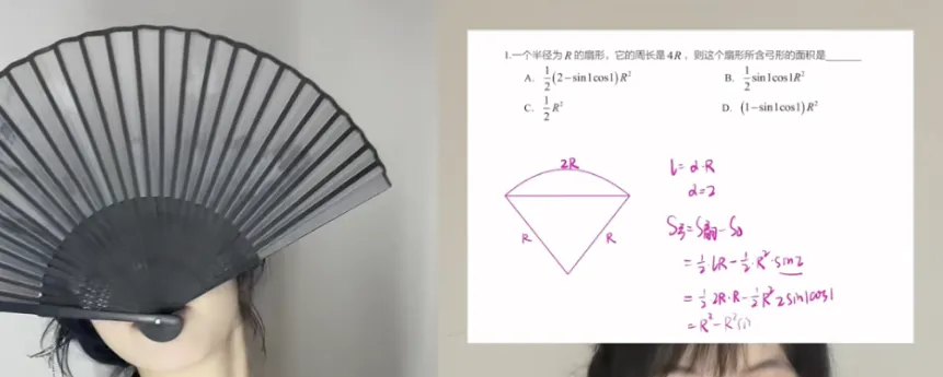 本以为这个博主是在拍最近比较火的“扇子挡脸”挑战,结果下一秒就让你求“扇形的面积”。
