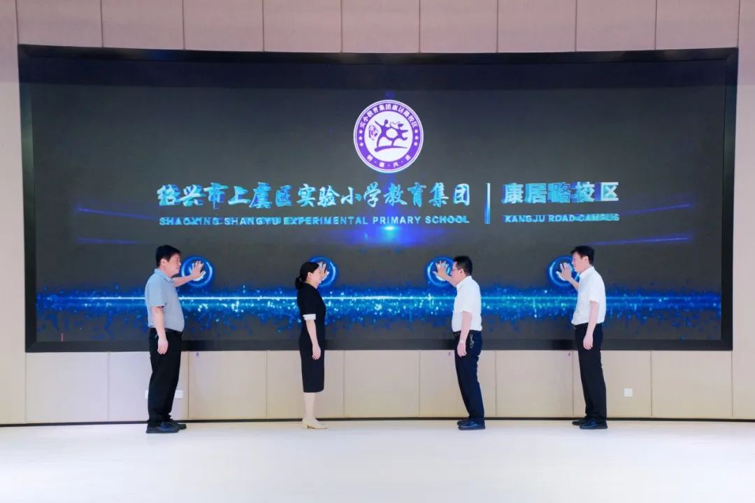 在全体师生激情振奋的倒数声中,上虞区人民政府副区长孙伟琴,教体局党委书记、局长房永军,百官街道党工委书记冯柱,实小教育集团党委书记王靖瑜,清华大学教育研究院副院长李锋亮,清华大学人文学院人文教育发展研究中心副主任、慕华成志副总裁杨帮然等领导见证了这所未来学校的诞生。