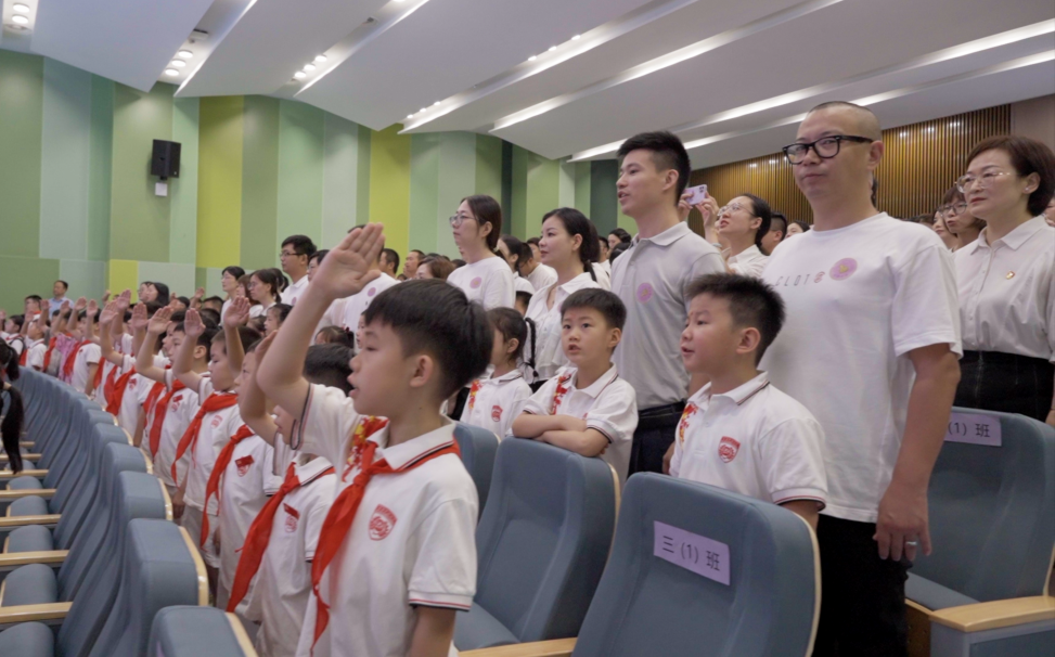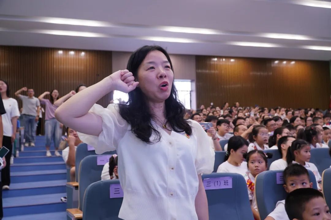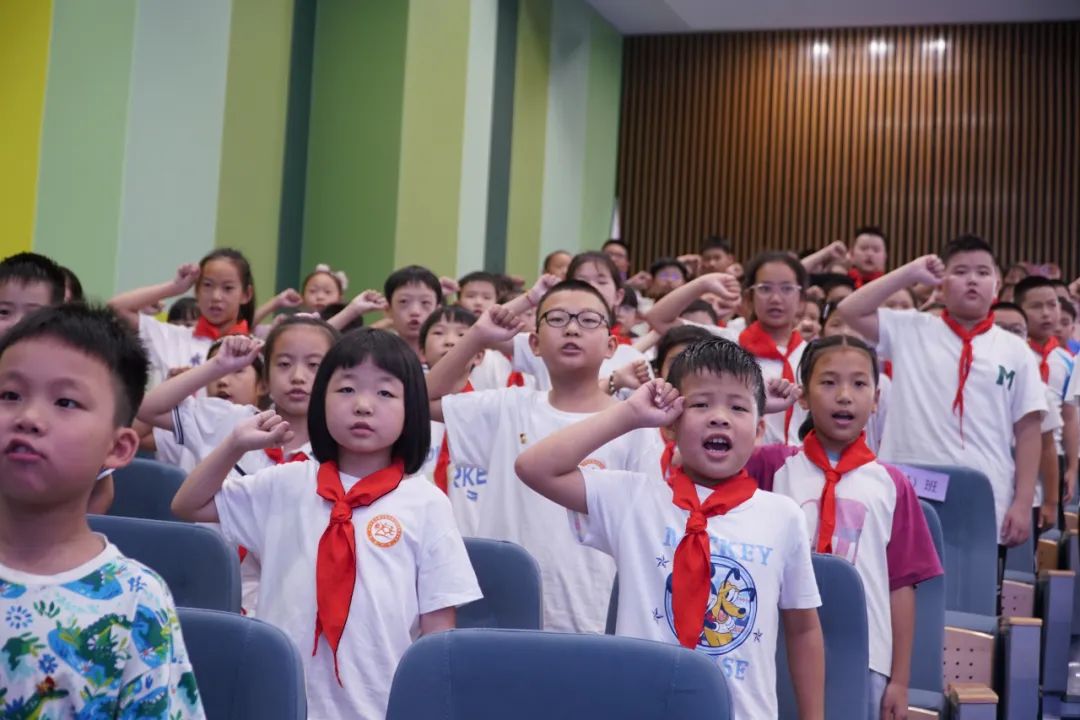 行则将至,做则必成。在新学校启程之际,新的梦想在心中升起,新的征程从脚下出发。全体学生举起右拳郑重宣誓:决心争当健康、尚美、乐学、智创的明德少年,立志成为拥有中国情怀、国际视野的现代人!