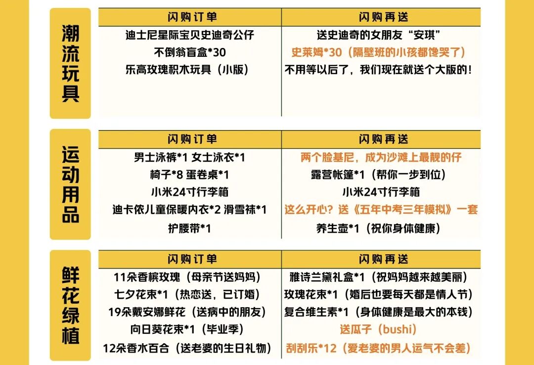算了,直接来到熟悉的环节吧——翻开十大品类剧本,看看当代闪购达人们的生活哲学。