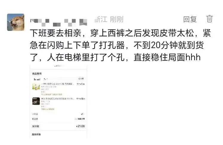 闪购还没想到,相亲前要闪购的,不是鲜花,而是打孔器。团队们都很好奇,您在公司电梯里打孔的故事,是不是所有同事都知道了?