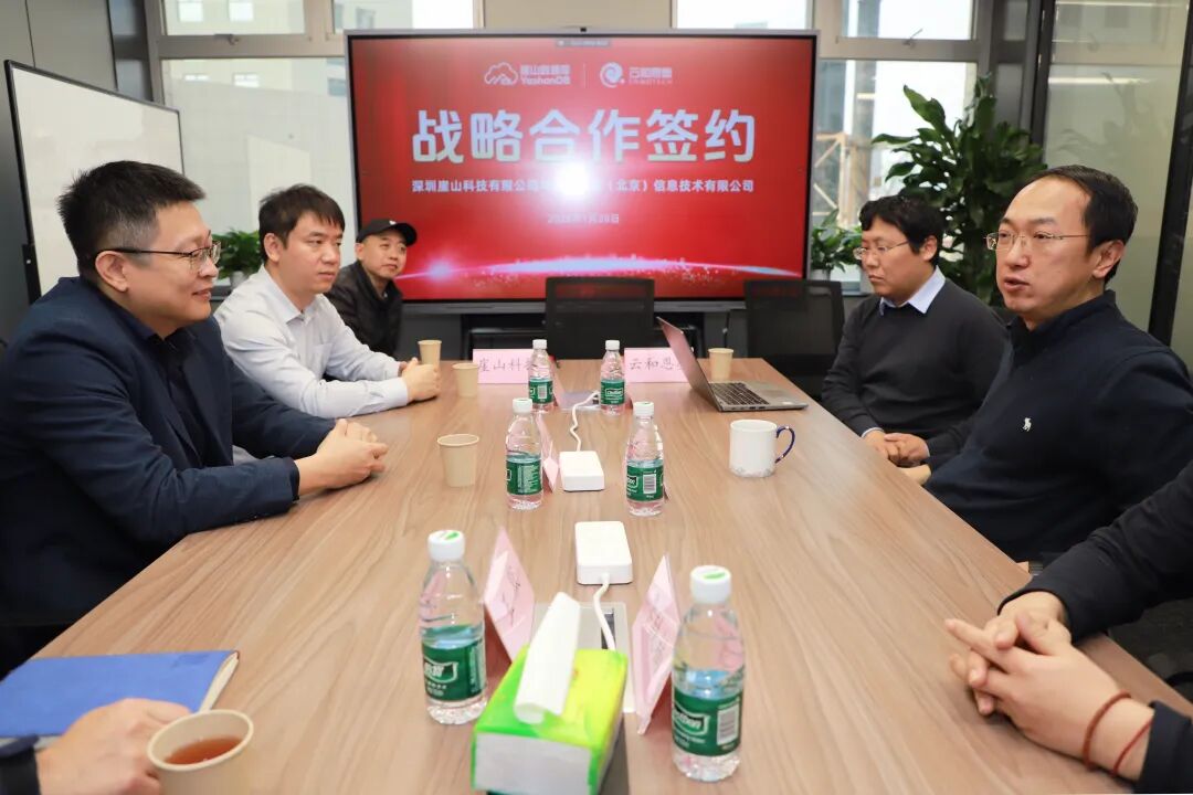 2026年1月28日,云和恩墨(北京)信息技术有限公司与深圳崖山科技有限公司在北京正式签署战略合作协议。云和恩墨创始人兼总经理盖国强、崖山科技CEO陈志标作为双方代表出席签约仪式并共同完成签约。此次战略合作协议的正式签署,标志着双方将在产品研发、市场开拓、客户服务及生态赋能等多维度展开全面且深入的协同,携手为国产数据库产业高质量发展注入强劲动能。陪同出席签约仪式并参加交流的有,崖山科技副总裁王南、交付总监王默、资深数据库专家顾问韩锋,云和恩墨联合创始人杨廷琨、李轶楠。