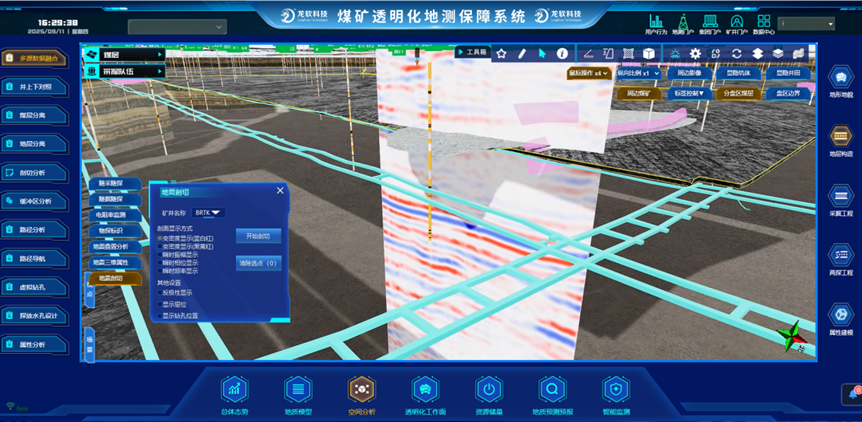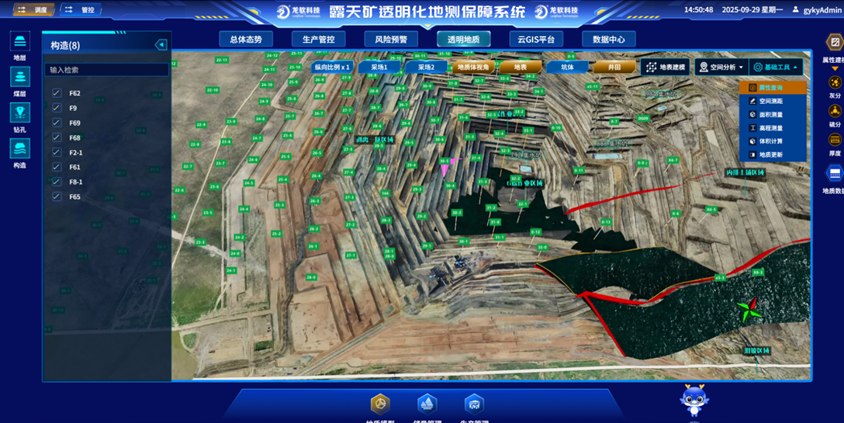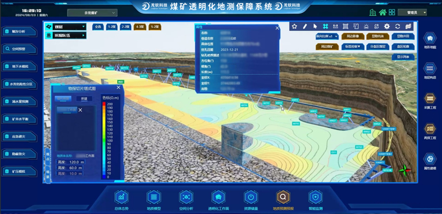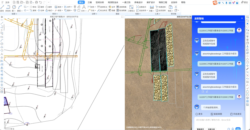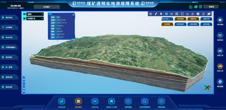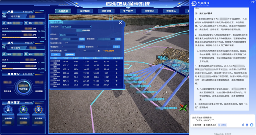 该平台实现了数据、图形和模型的一体化处理,支持煤矿地质、测量、通防、机电、生产等专业自动成图、同步建模和时空信息的高度共享和动态处理,有效破解了长期困扰行业的包括地质建模与更新在内的“卡脖子”关键技术难题。系统兼具的技术先进性与场景实用性,创新实现了时空信息云服务,在实现时空信息云服务的同时,深度融合了龙软科技多年积累的煤矿GIS专业化应用成果,不仅全面推动了矿山安全生产业务的数字化转型,更以高精度三维模型为支撑,为煤矿智能采掘、智能通风和灾害预警提供了坚实的技术底座与可视化决策平台。