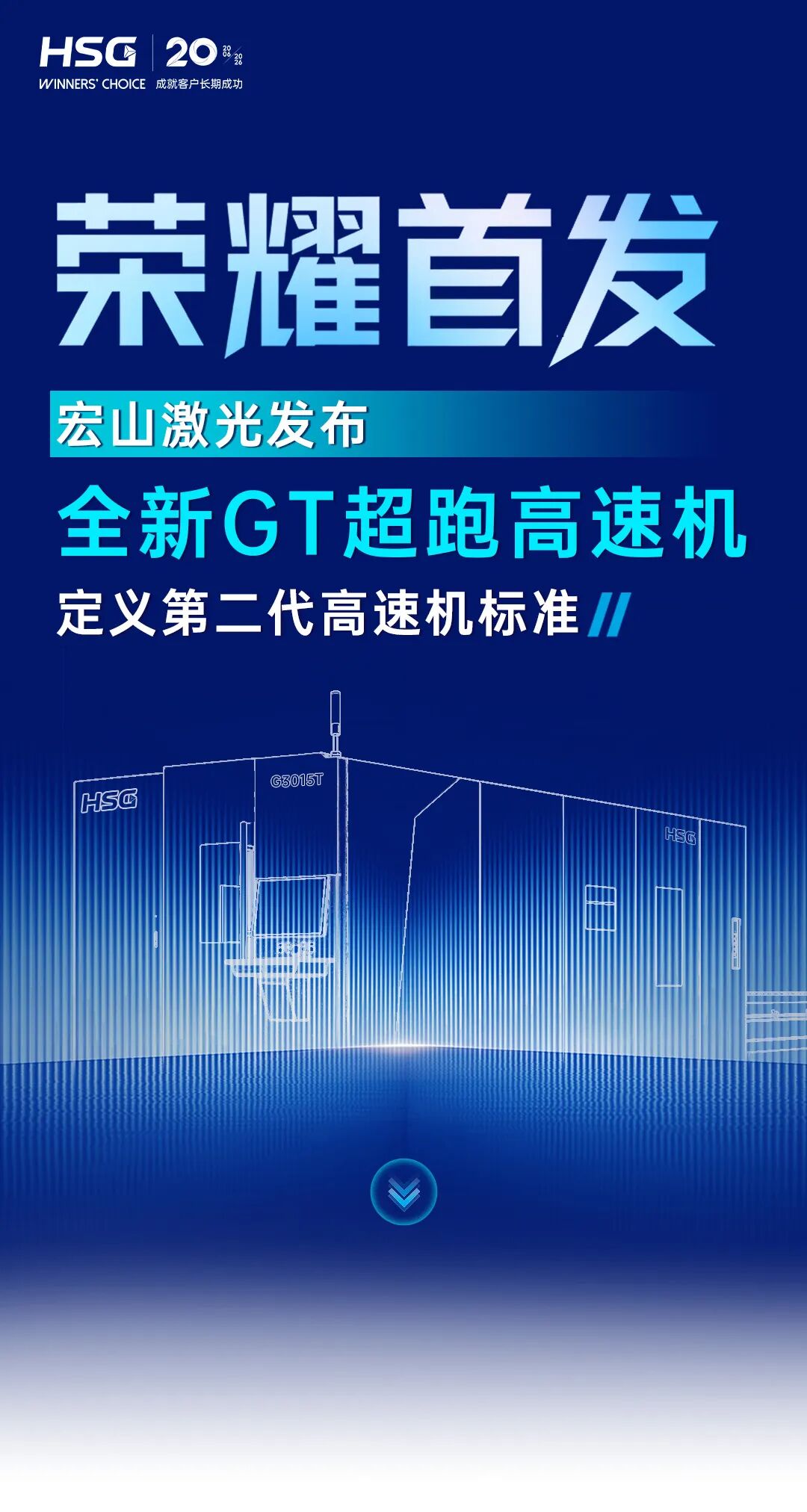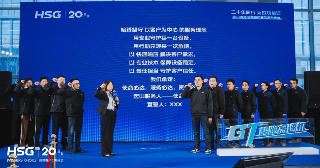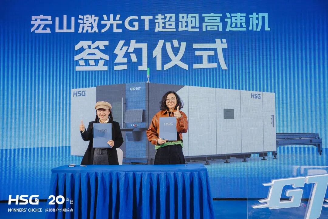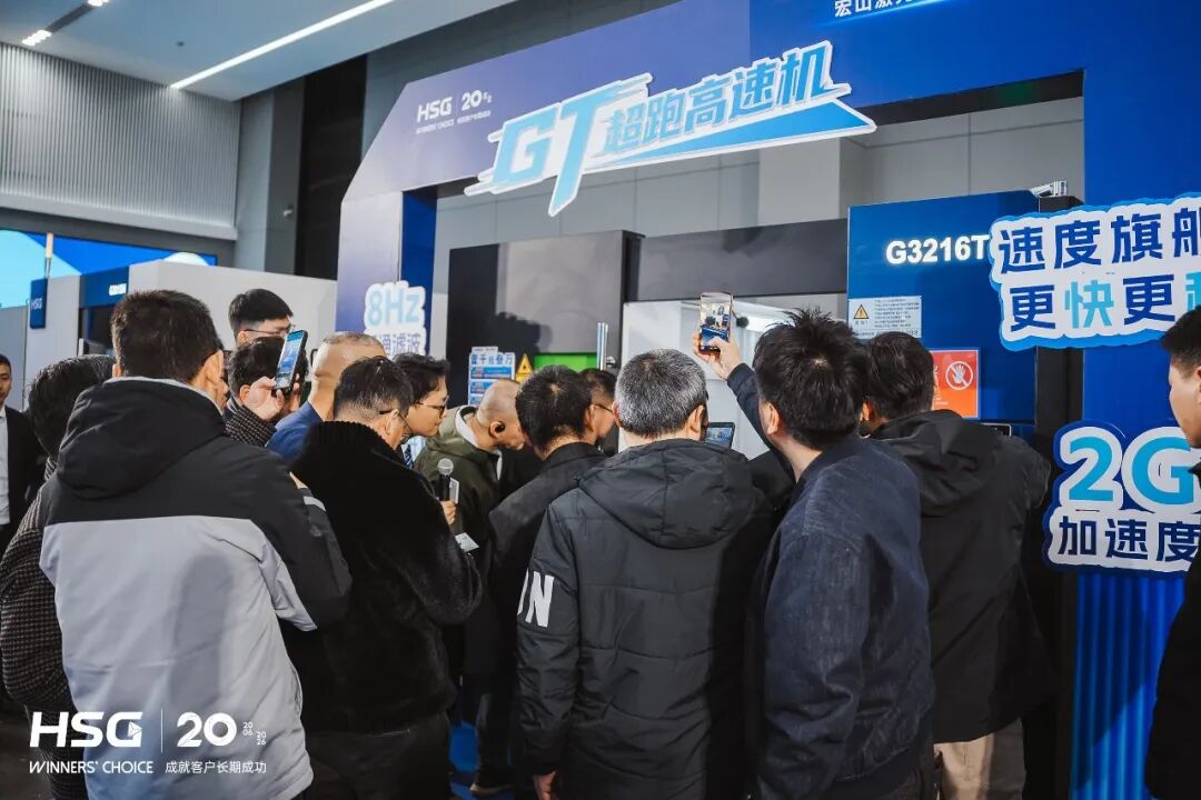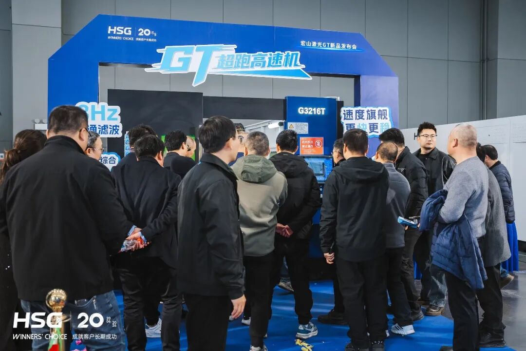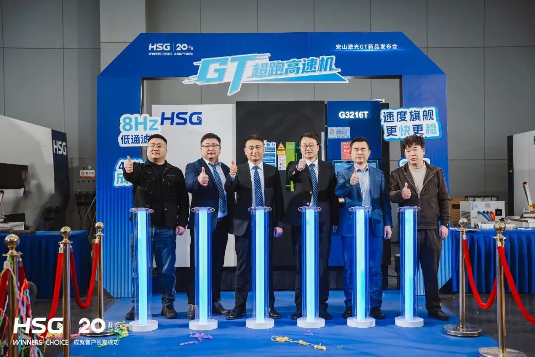 在宏山激光领导与现场嘉宾的共同见证下,GT超跑高速机正式揭幕亮相,不仅刷新加工速度,也在效率、稳定性和综合产出上实现全面升级。这不仅是新品的首发,更是宏山激光二十年技术积累的集中呈现。