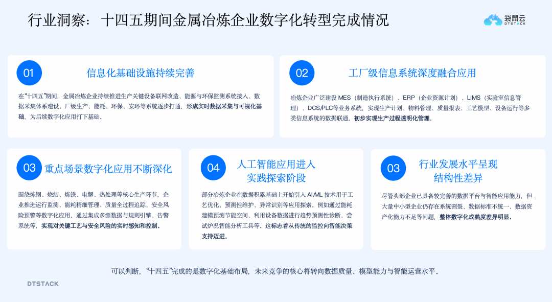过去5年,冶炼行业的信息化建设提速明显,整体发展可总结为五个方面的核心变化,为后续数字化应用奠定了坚实基础。