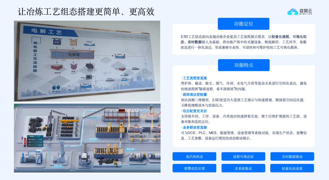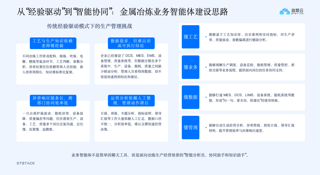 基于企业级智能运营体系,Data+AI技术在冶炼行业落地了多个典型应用场景,从经营分析到工艺可视化,从数字孪生到智能体应用,全方位推动企业生产运营的智能化升级。