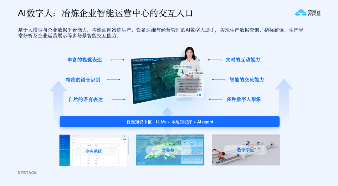 从经验驱动到智能驱动的智能体应用为解决企业生产管理依赖人工经验、知识难沉淀、异常处理效率低等问题,构建懂工艺、懂业务、懂数据、懂管理的业务智能体,成为企业的“数字员工”。这类智能体可实现工艺异常辅助分析、业务流程协同、全局数据快速查询、经营报告自动生成等功能,同时引入AI数字人作为智能运营中心的统一入口,通过自然语言交互、智能分析、可视化联动能力,实现“人找系统”到“系统主动服务人”的转变,让管理层通过简单问答即可获取分析结果、查看全局数据。