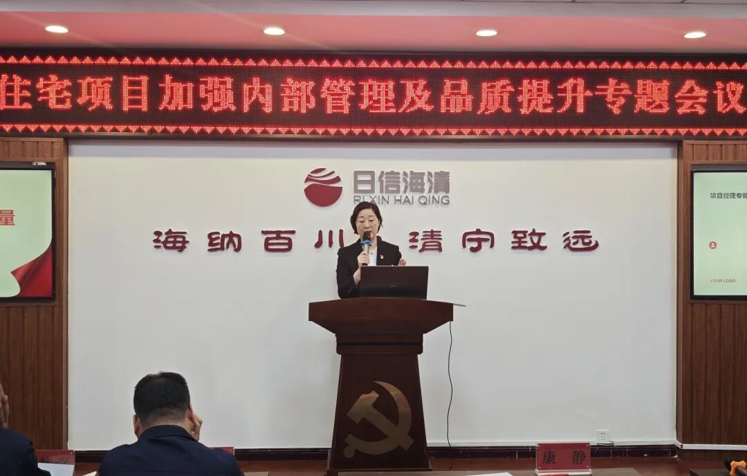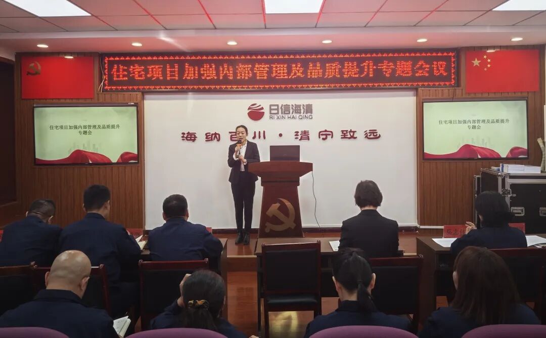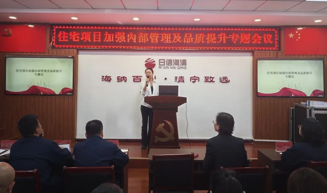 会议最后,常务副总经理康静作总结发言。康总指出,呼市住宅物业整治只会越来越严、标准越来越高,住宅物业已上升到城市治理与民生保障的战略高度。她强调,日信海清必须高度重视、严格落实政策要求,各项目经理要切实扛起责任,主动管理,做到问题闭环、事事落地。并要求各部室负责人务必对会议部署的各项工作做好跟踪监管与指导,确保政策要求在公司各住宅项目严格执行到位。