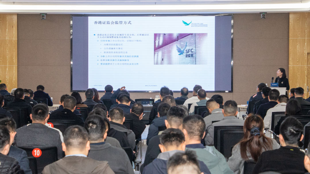 岚图汽车经管层领导、销售公司领导、各专业高级总监、总监、党(总)支部书记参加学习。高伟绅律师事务所资深顾问律师王艾润应邀作专题培训。王艾润立足国有企业改革深化提升行动关于完善中国特色现代企业制度、提升上市公司治理能力的部署要求,详细介绍了香港监管框架、董事及管理层的责任、信息披露要求及关连交易和须予公布的交易的区别,并通过剖析多起具有代表性的违规案例,深刻阐明了“合规就是生命线”的重要逻辑,强化了参训人员对监管红线的敬畏之心,为公司后续规范运作提供了明确指引。