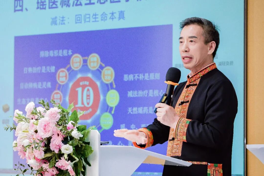 ▲覃迅云院长作“瑶医减法生态医学”主题分享。