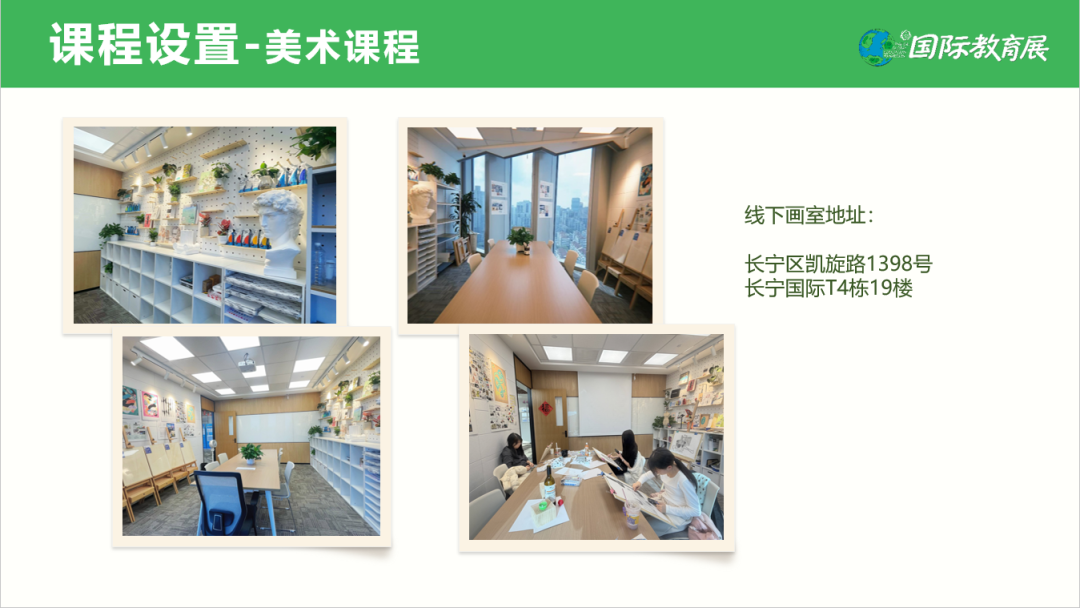 美术画室位于上海市长宁区凯旋路1398号长宁国际T4栋19楼。