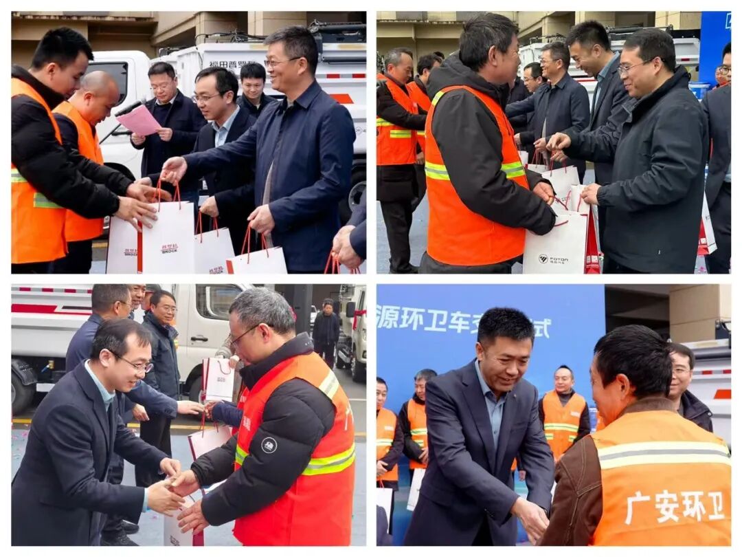 广安市广安区综合行政执法局局长胡晓锋、市政环卫所所长辛飞、北汽福田川渝营销中心总经理代勇、福田雷萨副总经理兼普罗科营销中心总经理雷领冬,以及来自广安环卫一线的职工代表共同出席并见证了这一重要时刻。