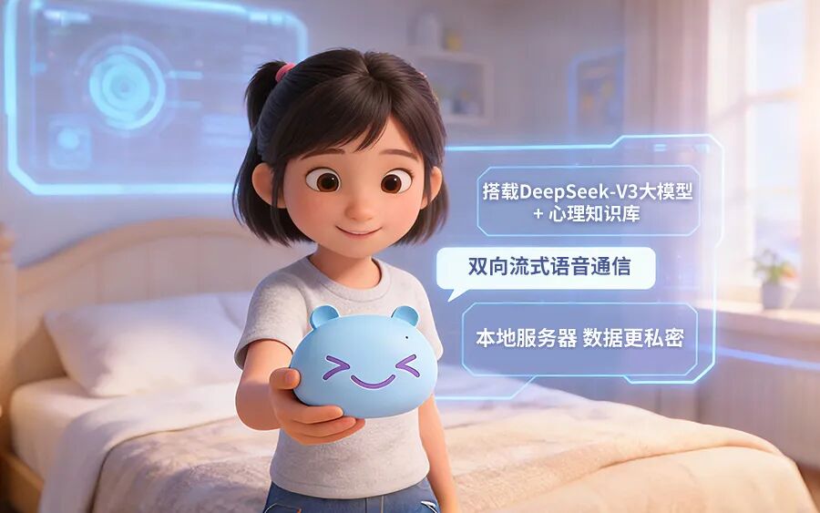 不同于传统AI玩具问候:“你今天开心吗?”,九型小悦会温柔地开启对话:“你刚才说话的语气有点低落,想和我聊聊吗?”这源于其强大的“最强大脑”——搭载了深度融合专业心理知识库的DeepSeek-V3大模型。它不仅能精准识别孩子的情绪状态,给予恰如其分的回应,更能通过持续对话,主动进行心理风险评估,成为守护孩子心灵的第一道哨兵。