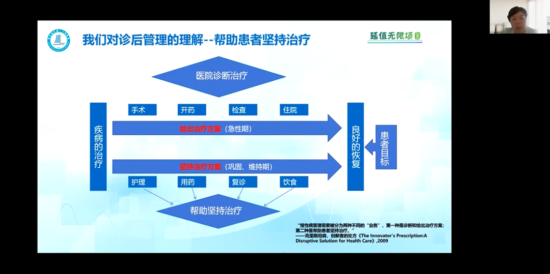 当前,延续性医疗服务的关注度日益攀升,但其作为传统医疗服务的延伸和补充,长久以来并未得到应有的重视,导致患者出院后缺乏必要的医疗支持,从而增加疾病复发和再入院的风险。就慢病来说,目前其治疗和管理就存在脱节的情况,即患者在院内的管理是强化的,但出院后就松散了很多,患者更多处于游离状态,只是间断去医院拿药,这样就导致反复就诊率居高不下。
