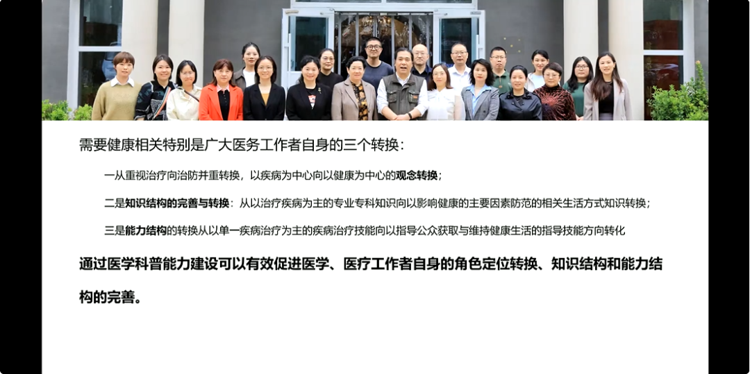 授课环节之后,绍兴市人民医院护理部主任朱美丽、杭州市富阳区第一人民医院泌尿外科主任蔡万松,围绕各自医院在诊后延续性医疗服务中有何成功的实践经验、健康行为干预如何与诊后疾病管理有效结合从而提升管理成效这两大议题进行了精彩的分享,大家畅所欲言倾囊相授,共同为诊后延续性服务贡献智慧和力量,共谋百姓健康福祉。