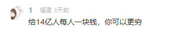 比如@1老师就提出了一种可以变得更穷的方法:给14亿人每人一块钱。